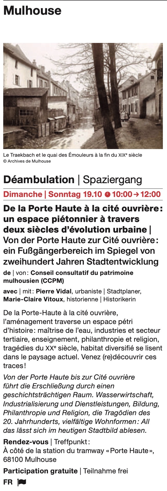 Dimanche 19 OCTOBRE 10h00-12h00 : de la Porte Haute à la Cité Ouvrière – NOTICE